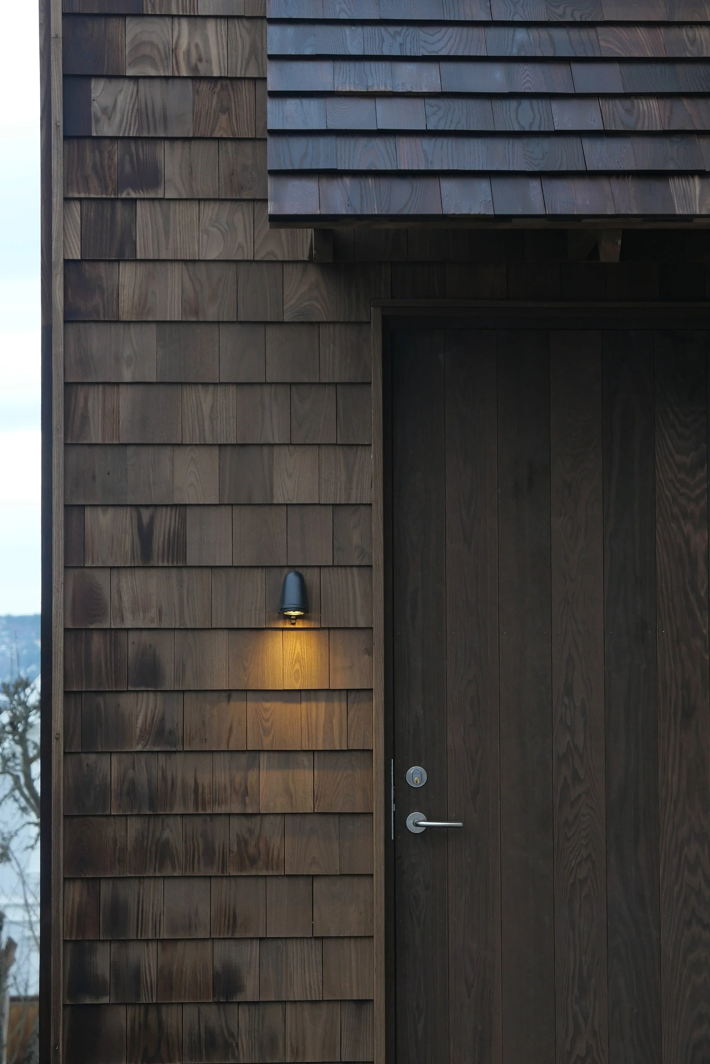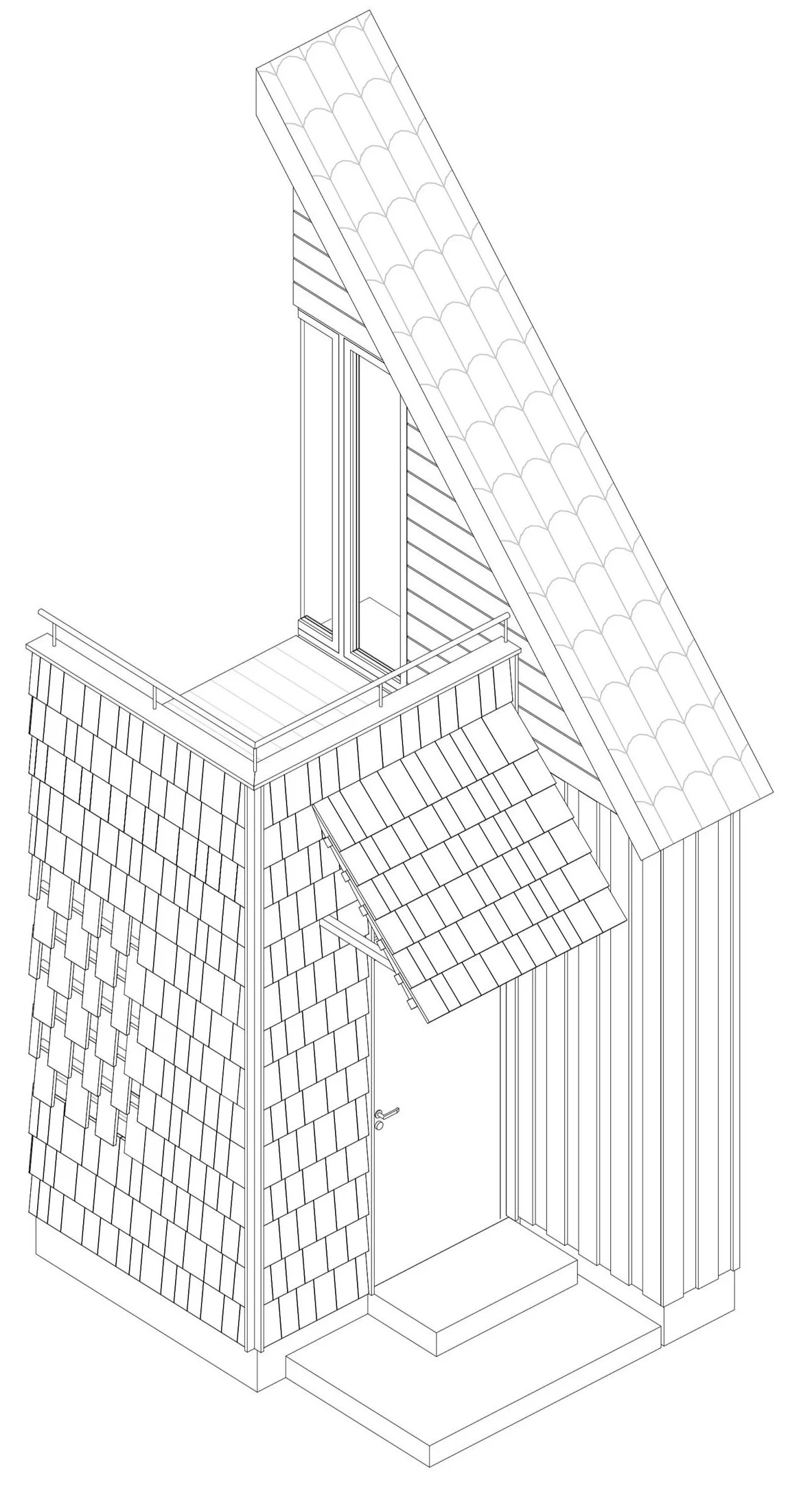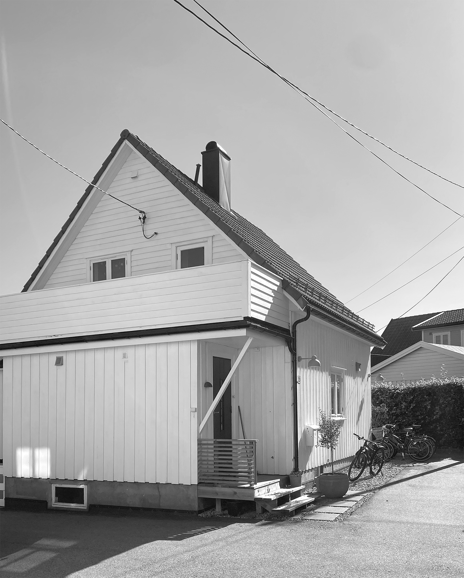 Boligen ligger i en gate med flere gamle, vakre trehus med fine detaljer. I transformasjonen av tilbygget, var intensjonen å rydde opp i den eksisterende arkitekturen og bruke sponkledning på fasaden som en kobling til norsk byggetradisjon. En fin detaljering, kvalitet i materialer og et godt håndværk skaper en subtil forbindelse til kulturarven, samtidig som tilbygget får en særegen karakter. Ved å fjerne annen hver spon foran vinduet i entréen skapes et poetisk lysinnfall inne, samtidig som det skjermer for innsyn fra gaten. Foran hovedinngangen får man ly for regnet under det lille halvtaket som ønsker familien velkommen hjem.