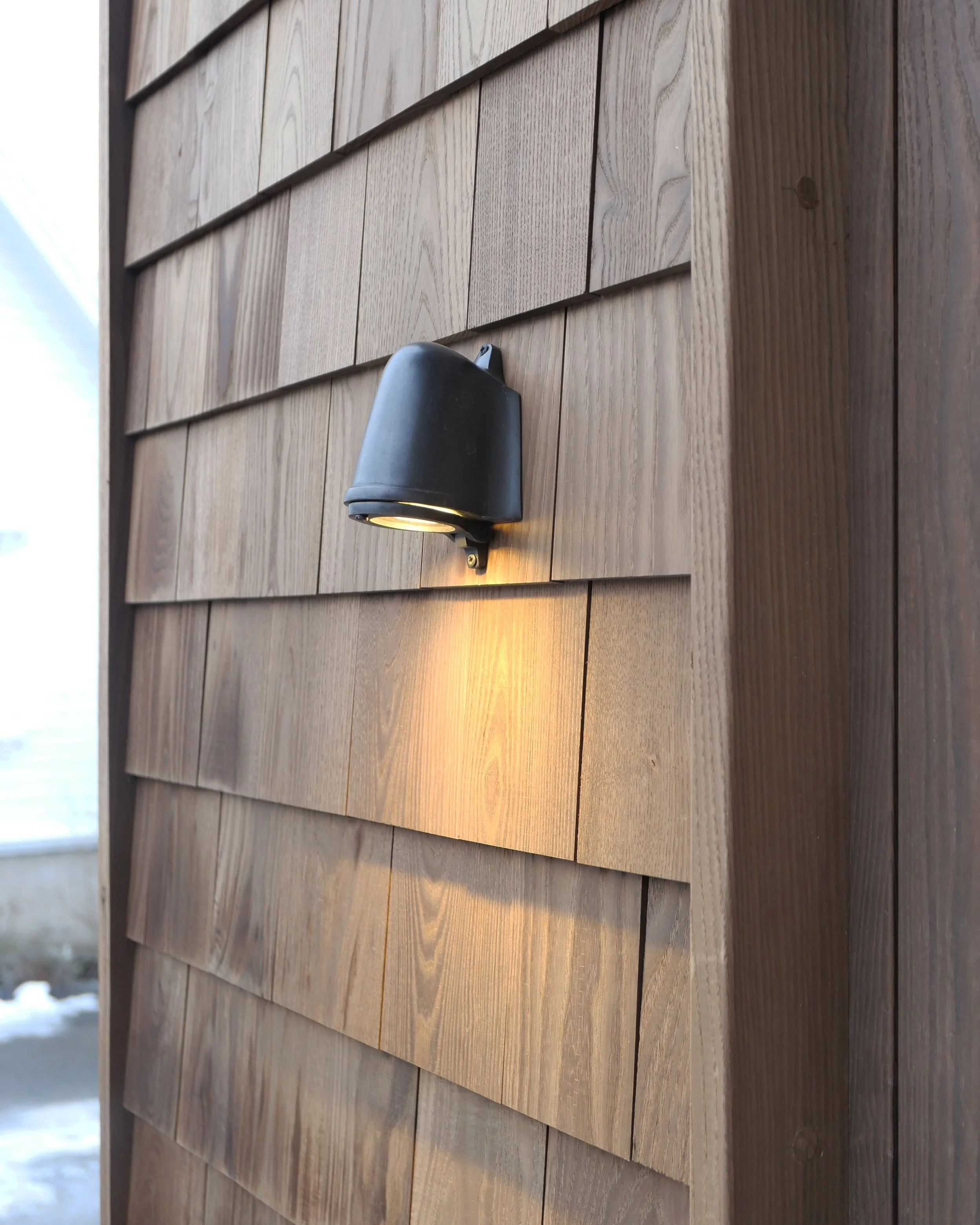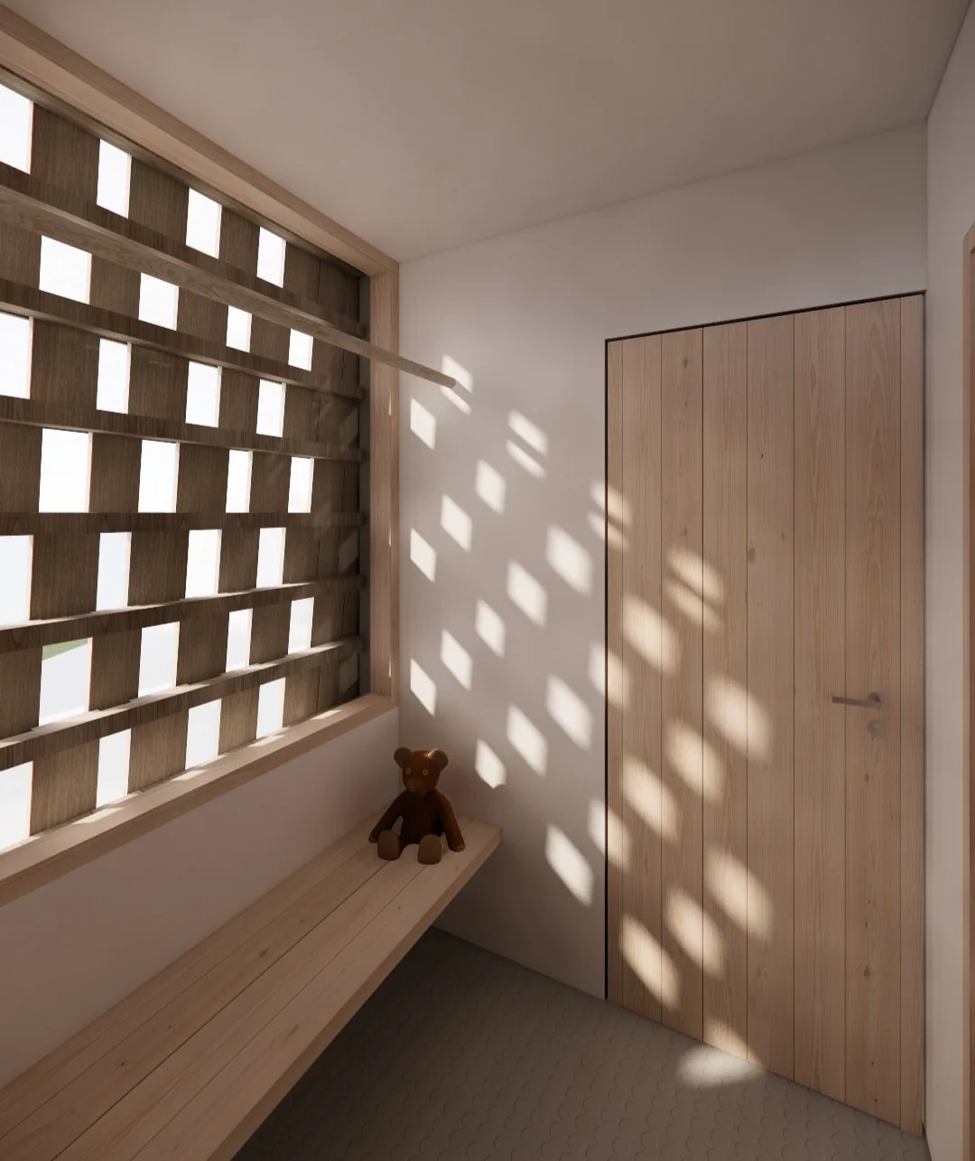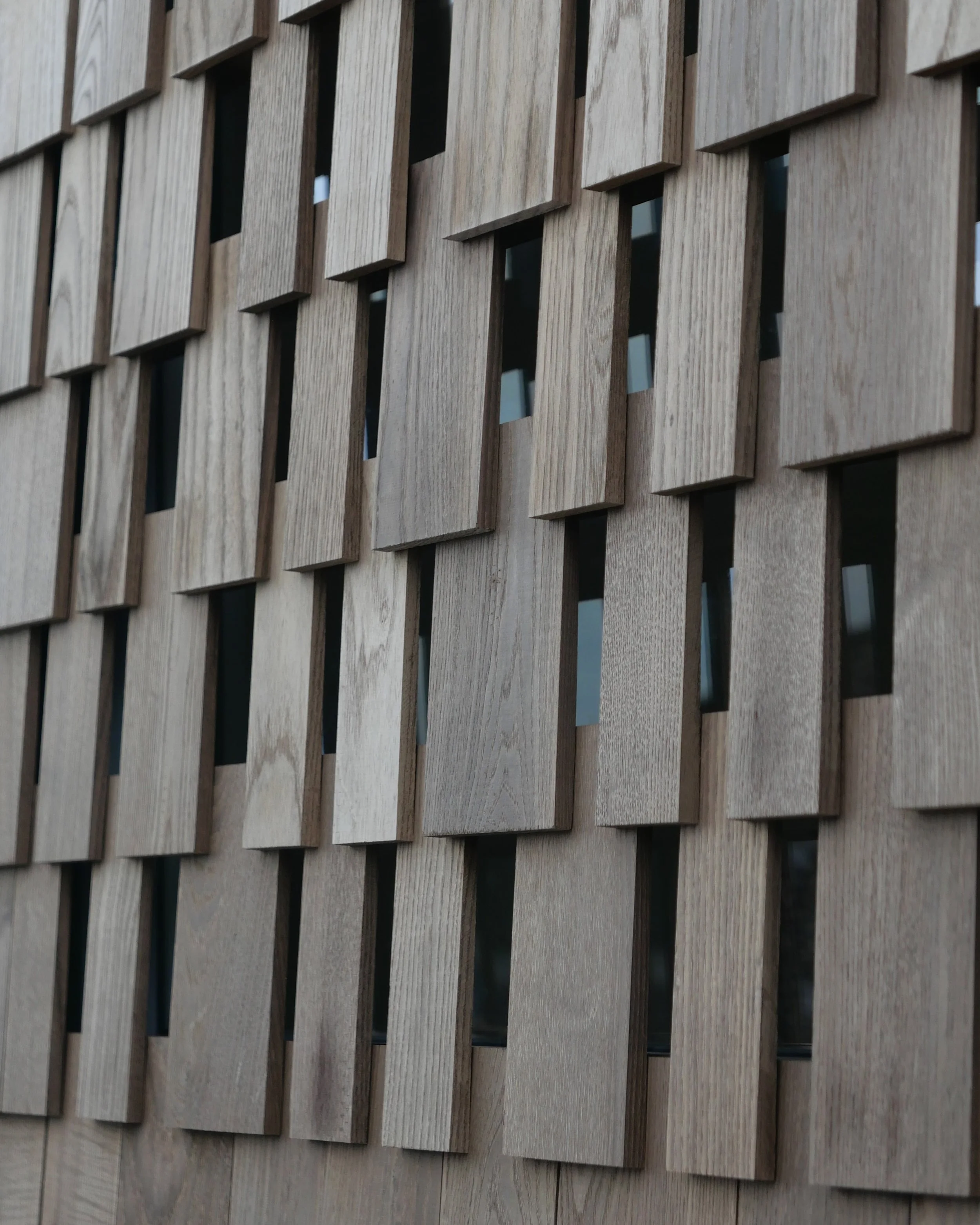 Boligen ligger i en gate med flere gamle, vakre trehus med fine detaljer. I transformasjonen av tilbygget, var intensjonen å rydde opp i den eksisterende arkitekturen og bruke sponkledning på fasaden som en kobling til norsk byggetradisjon. En fin detaljering, kvalitet i materialer og et godt håndværk skaper en subtil forbindelse til kulturarven, samtidig som tilbygget får en særegen karakter. Ved å fjerne annen hver spon foran vinduet i entréen skapes et poetisk lysinnfall inne, samtidig som det skjermer for innsyn fra gaten. Foran hovedinngangen får man ly for regnet under det lille halvtaket som ønsker familien velkommen hjem.